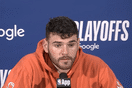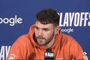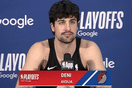 虎扑04月29日讯 今天NBA季后赛开拓者客场对阵马刺的比赛已经结束。全场战罢,开拓者以(1)95-114(4)不敌马刺。赛后,开拓者球员多诺万-克林根接受了记者采访,并谈到了本赛季球队的表现。克林根:“当我在比赛还剩四分钟下场时,我在想这场比赛我们本可以做得更好。然后当最后两分钟我们意识到大势已去时,更多的是感慨。”本场比赛,开拓者球员多诺万-克林根全场11投4中,三分7中2得到10分5篮板6助